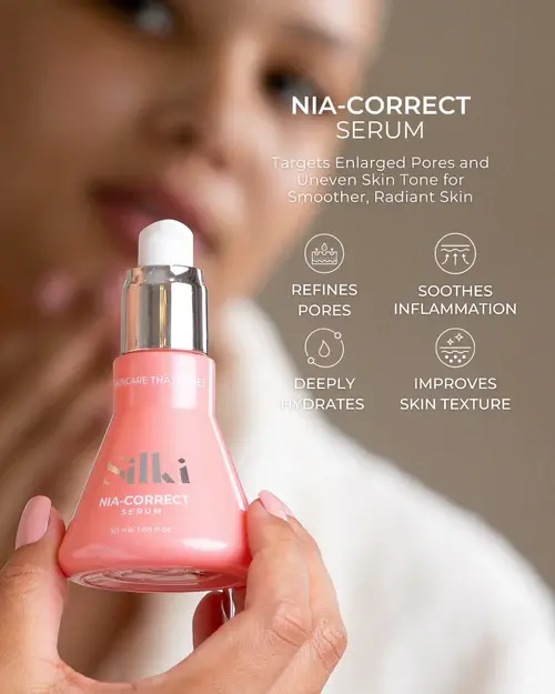 The Silki Nia-Correct Serum is Dermatologically Tested and contains 7% Niacinamide, Hyaluronic Acid and Aloe Vera Leaf to deliver comprehensive benefits for your skin.